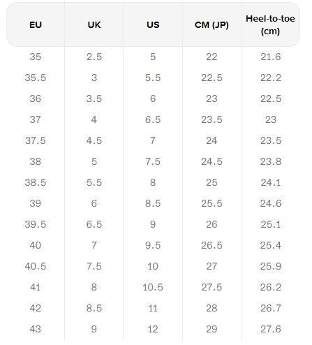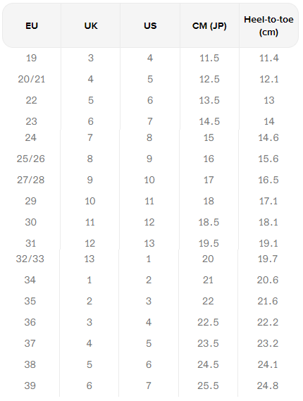 Die CM-Größe (Zentimeter) bezieht sich auf die tatsächliche Länge der Einlegesohle. Bitte beachten Sie, dass die Einlegesohle immer länger sein sollte als die tatsächliche Länge Ihres Fußes.