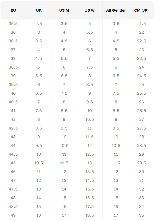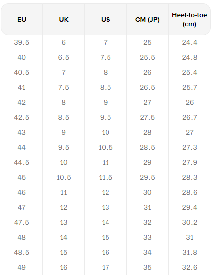 The CM (centimeter) size refers to the actual length of the insole. Please note that the insole should always be longer than the actual length of your foot.